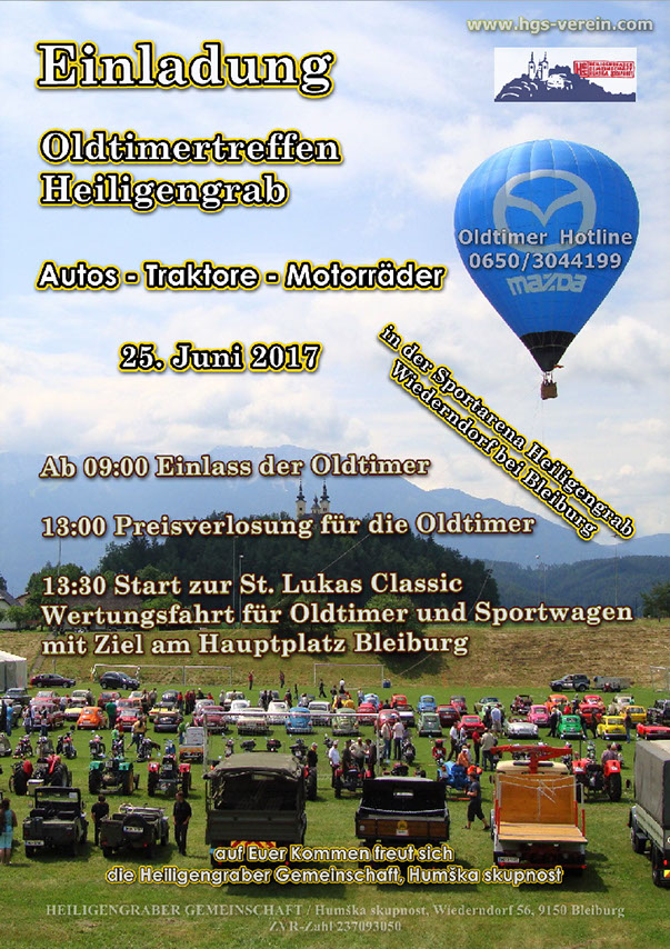 Als weitere Neuerung ist eine Zusammenarbeit mit dem Heiligengraber Oldtimertreffen geplant. Stefan Zlinder hat auf dem Heiligengraber Sportplatz seit vielen Jahren zahlreiche Oldtimer-Freunde aus ganz Kärnten & der benachbarten Steiermark zu Gast. Damit war es naheliegend die beiden Veranstaltungen zu kombinieren und so wird die St.Lukas Classic Wertungsfahrt in diesem Jahr beim Heiligengraber Oldtimertreffen starten. Beide Veranstaltungen finden am Sonntag, den 25. Juni 2017 statt.